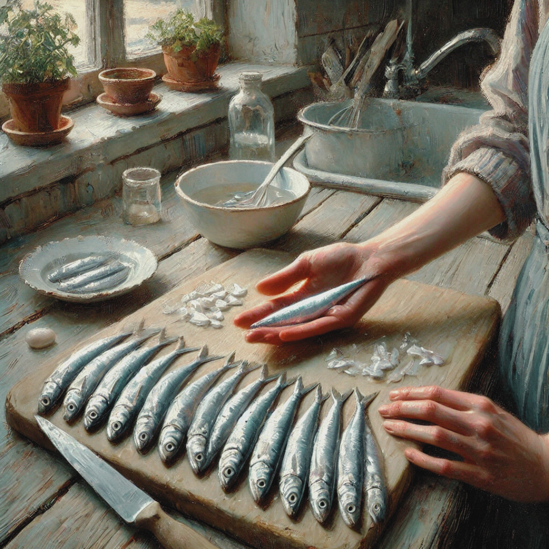La lama cala sulla prima testa argentata, la mozzo e la sposto. Apro in due il corpo, levo la lisca ed estraggo le viscere. Non dovrei farti assistere a questo scempio della tua specie, ma a te lo posso rivelare che anche a me costa fatica essere qui, in piedi in questa cucina, con in mano un coltello a pulire voi alici. È stata mia madre a decidere il menù della cena; alici fritte, il piatto preferito di mio padre. La ricetta è sempre la stessa, uova farina e cinquecento grammi di alici.